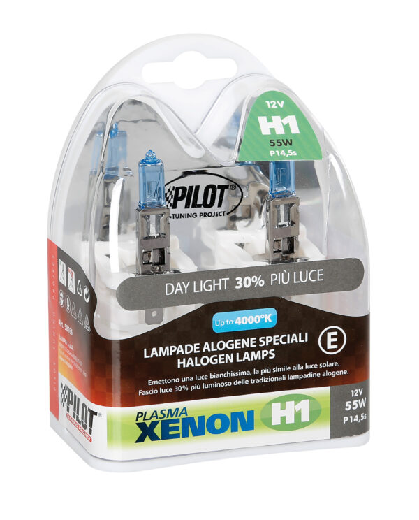 12V Lampada alogena Xenon – H1 – 55W – P14,5s – 2 pz – Scatola Plast.