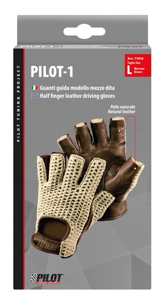 Pilot-1, guanti guida mezze dita – L – Marrone