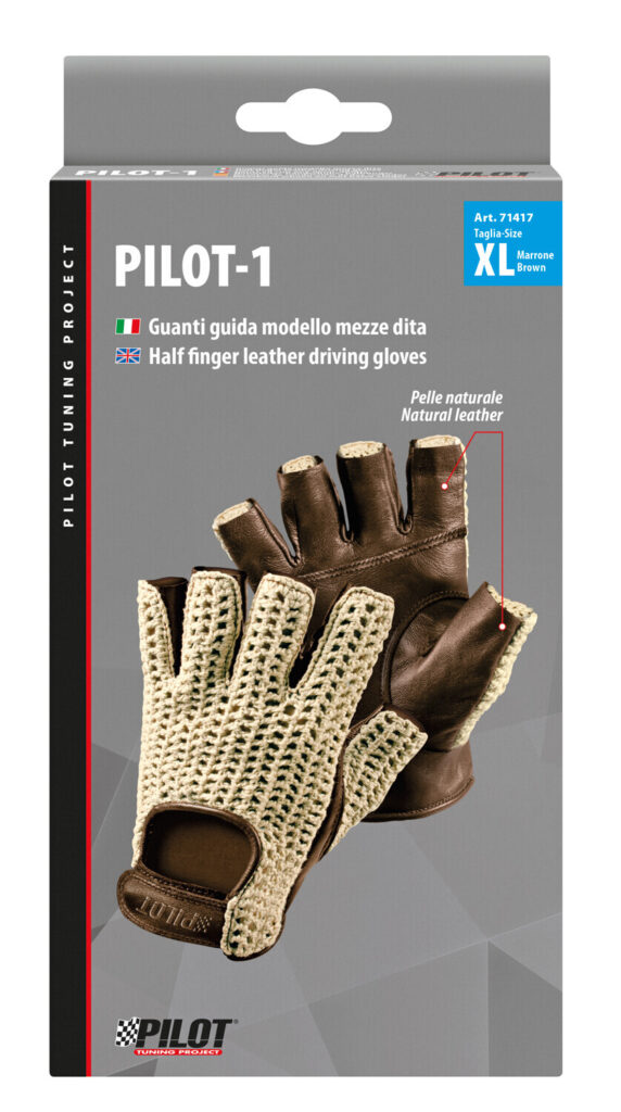 Pilot-1, guanti guida mezze dita – XL – Marrone