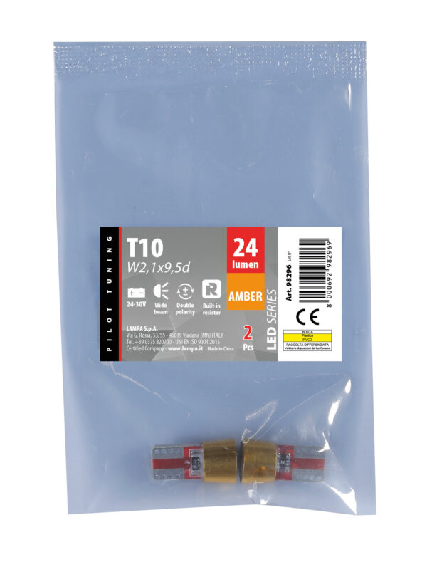 24/30V Led series – 6 Led SMD – (T10) – W2,1×9,5d – 2 pz – Busta – Arancio – Doppia polarità – Resistenza incorporata