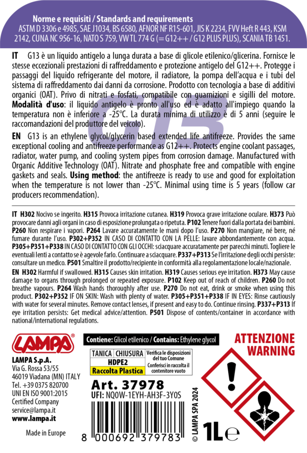 Premium Series Viola G13, liquido antigelo radiatore – (-40°C / +110°C) – 1 L