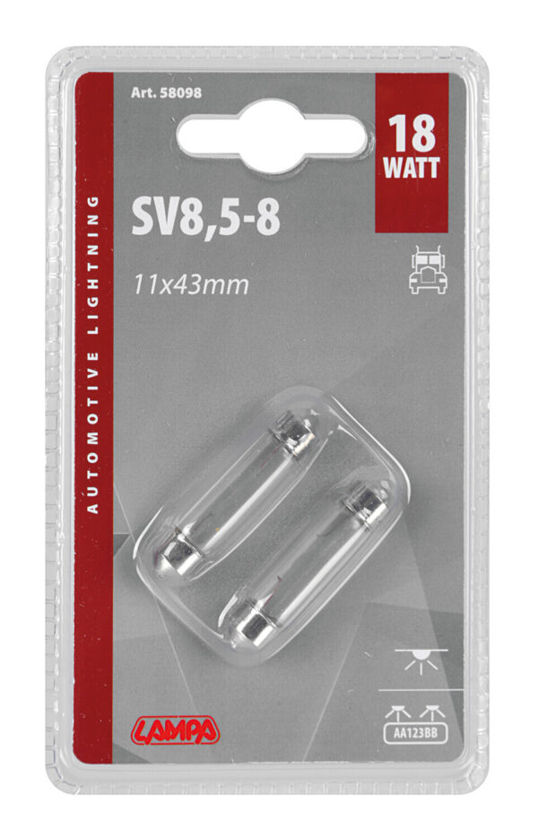 24V Lampada siluro – 11×43 mm – 18W – SV8,5-8 – 2 pz – D/Blister