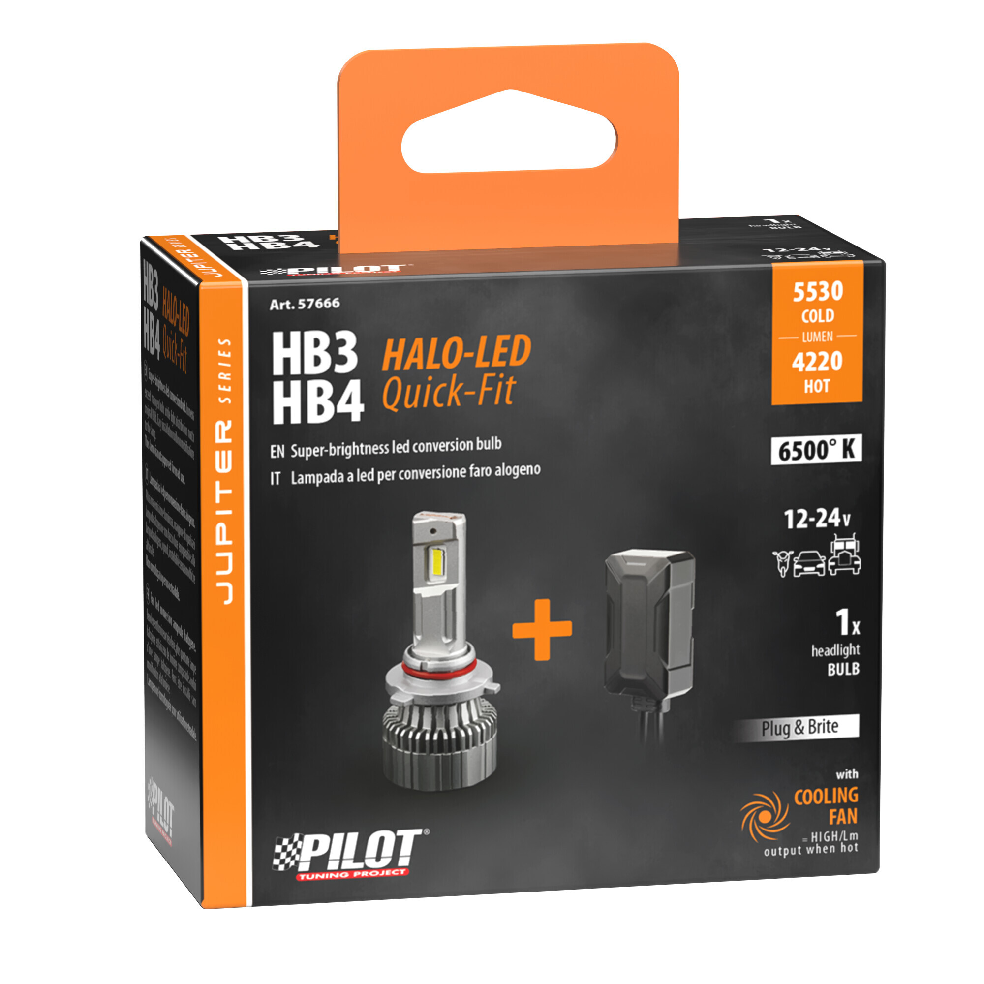 12/24V Halo Led Jupiter Series Quick-Fit – (HB3-HB4) – 55W – P20d / P22d – 1 pz – Scatola