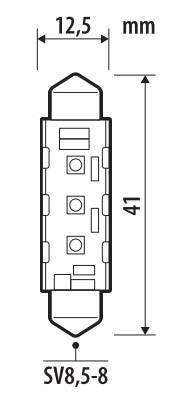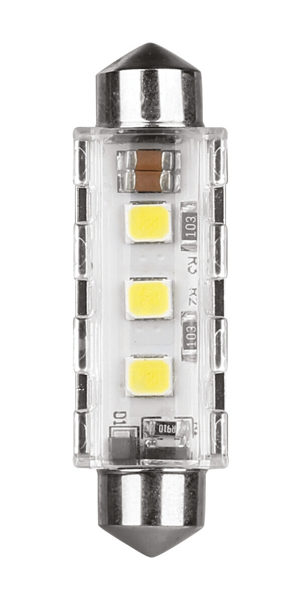 12/24V Pro-User Series – 12,5×41 mm – SV8,5-8 – 1 pz – Scatola – Bianco – Doppia polarità – Resistenza incorporata