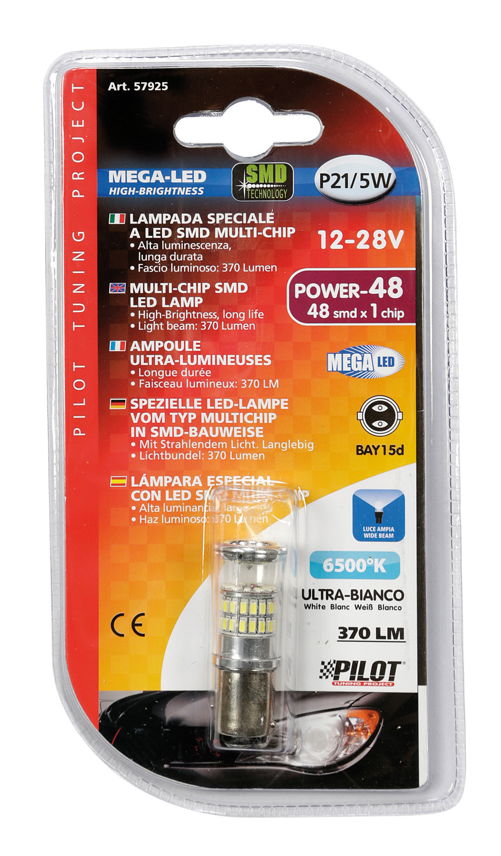 12/28V Mega-Led 48 – 48 SMD x 1 chip – (P21/5W) – BAY15d – 1 pz – D/Blister – Bianco