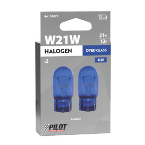 12V Blue Dyed Glass, Lampada zoccolo vetro – (W21W) – 21W – W3x16d – 2 pz – Scatola