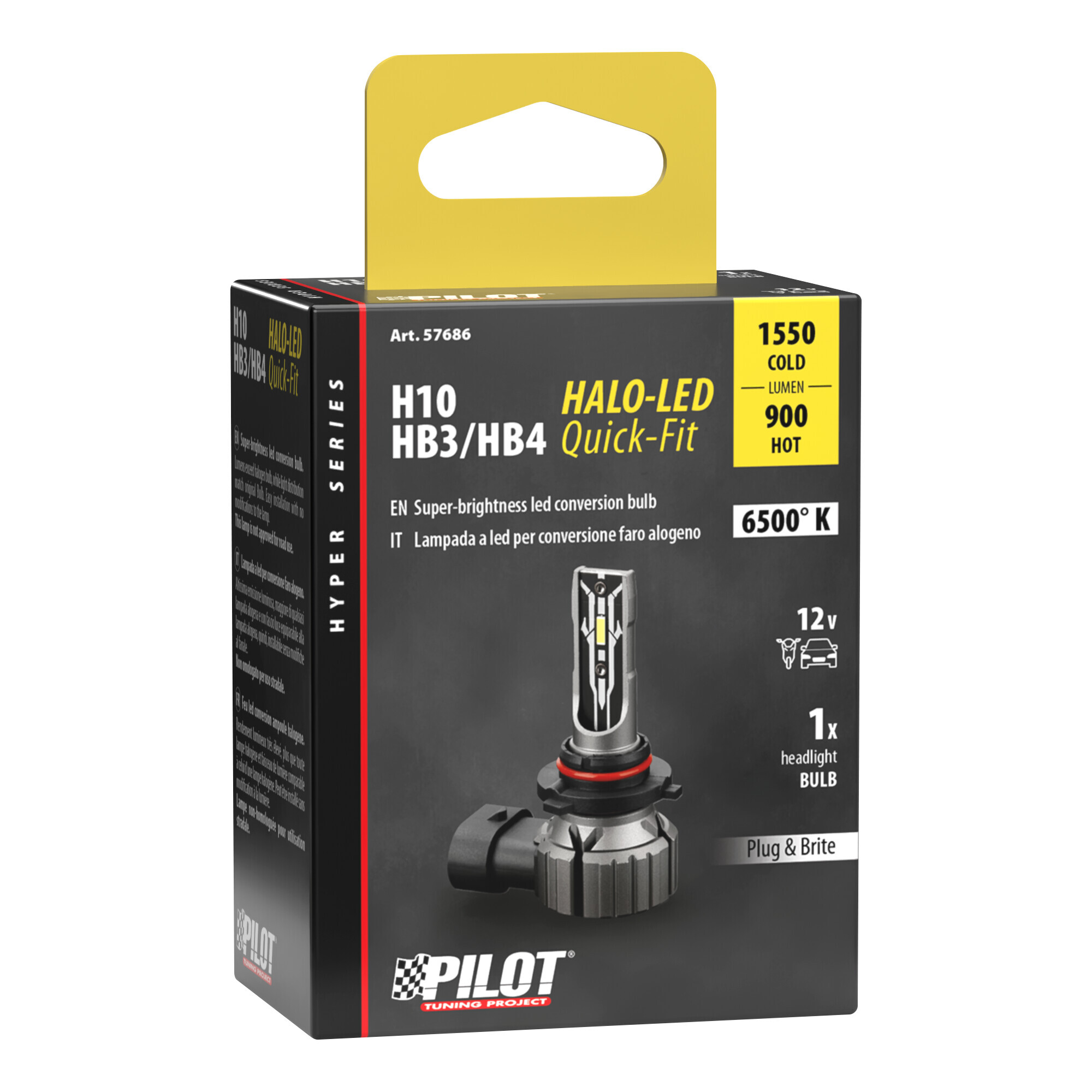 12V Halo Led Hyper Series Quick-Fit – (H10-HB3-HB4) – 15W – PY20d / P20d / P22d – 1 pz – Scatola