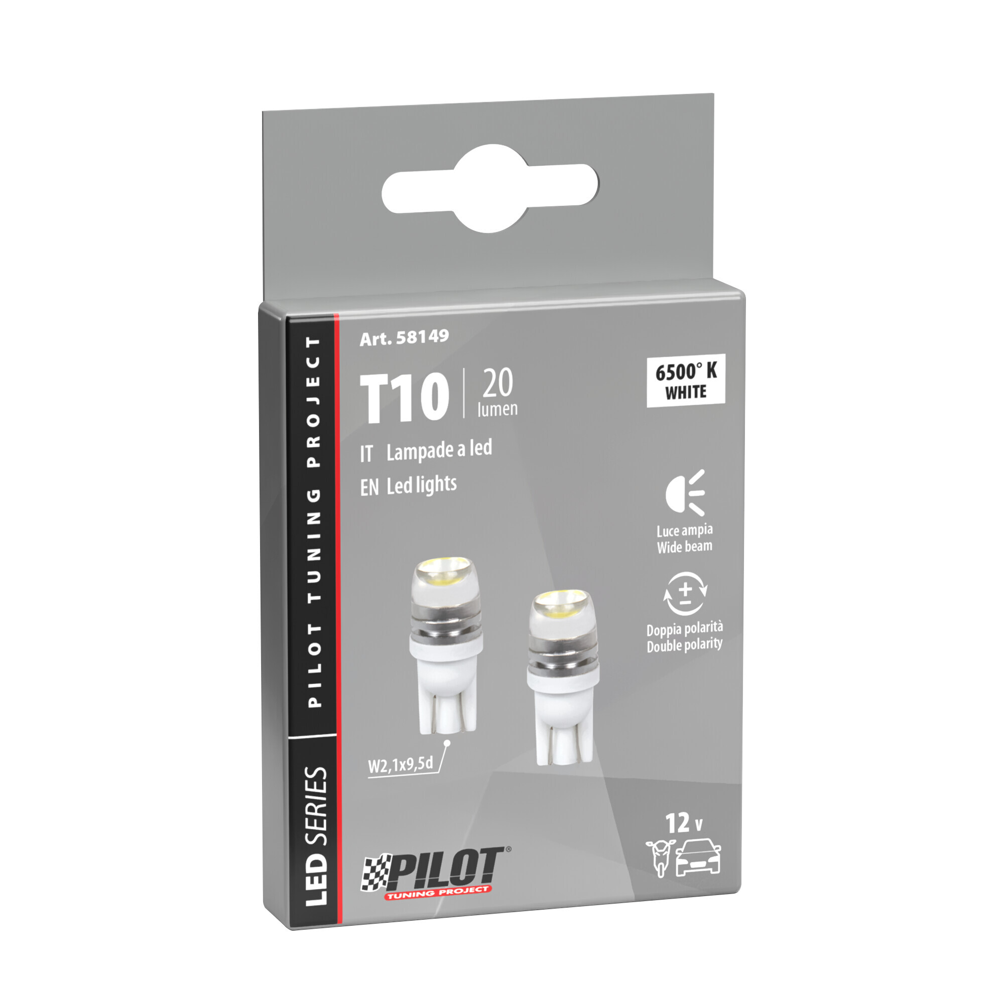 12V Colour-Led, lampada 1 Led – (T10) – W2,1×9,5d – 2 pz – Scatola – Bianco