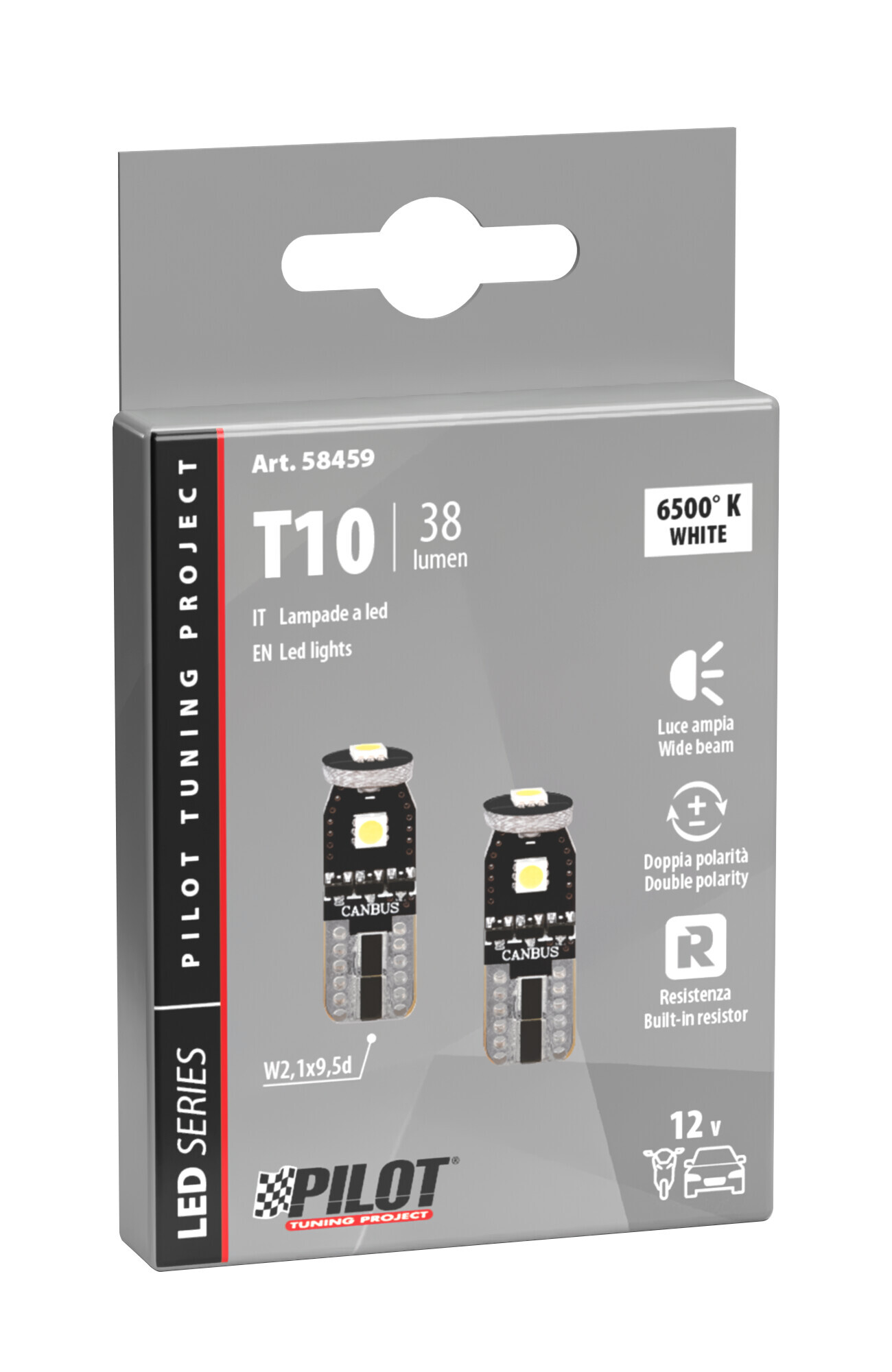 10/30V Mega-Led 10 – 10 SMD x 1 chip – (T10) – W2,1×9,5d – 2 pz – Scatola – Bianco – Doppia polarità – Resistenza incorporata