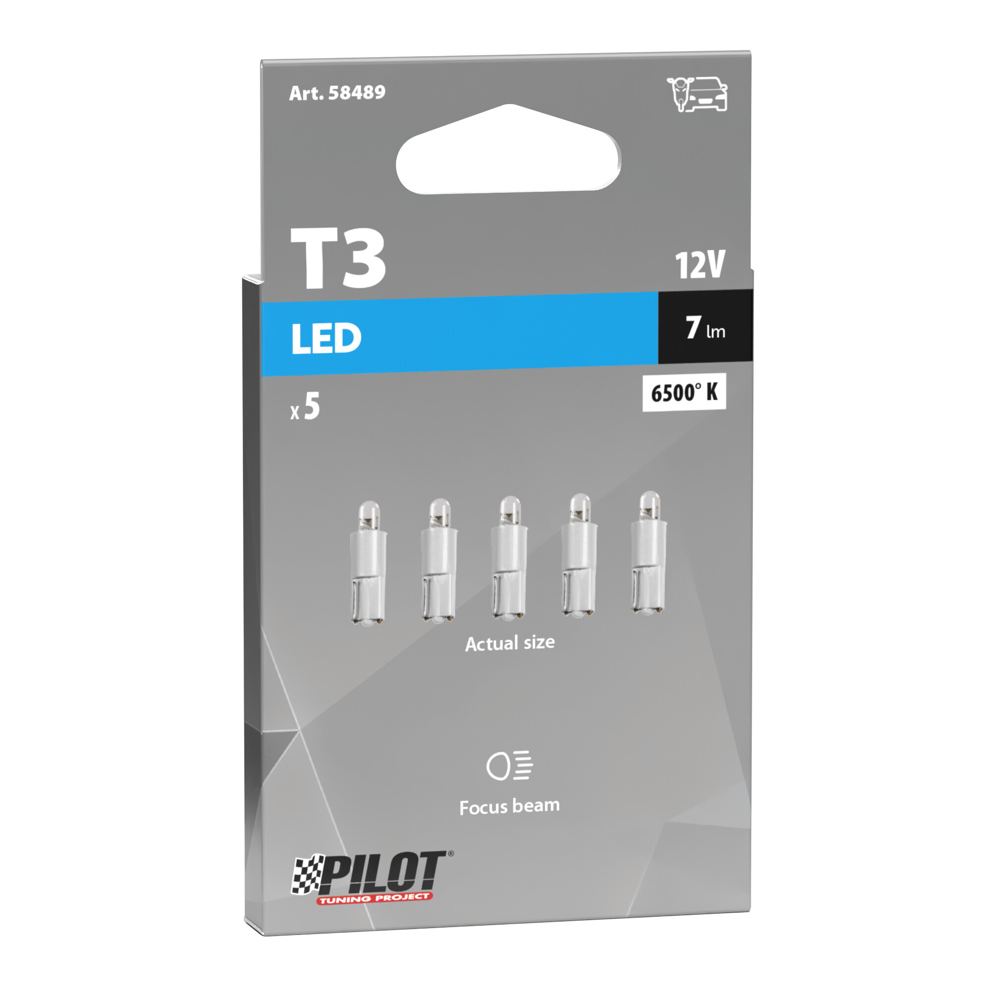 12V Kit Lampade cruscotto 1 Led – (T3) – W2x4,6d – 5 pz – Scatola – Bianco
