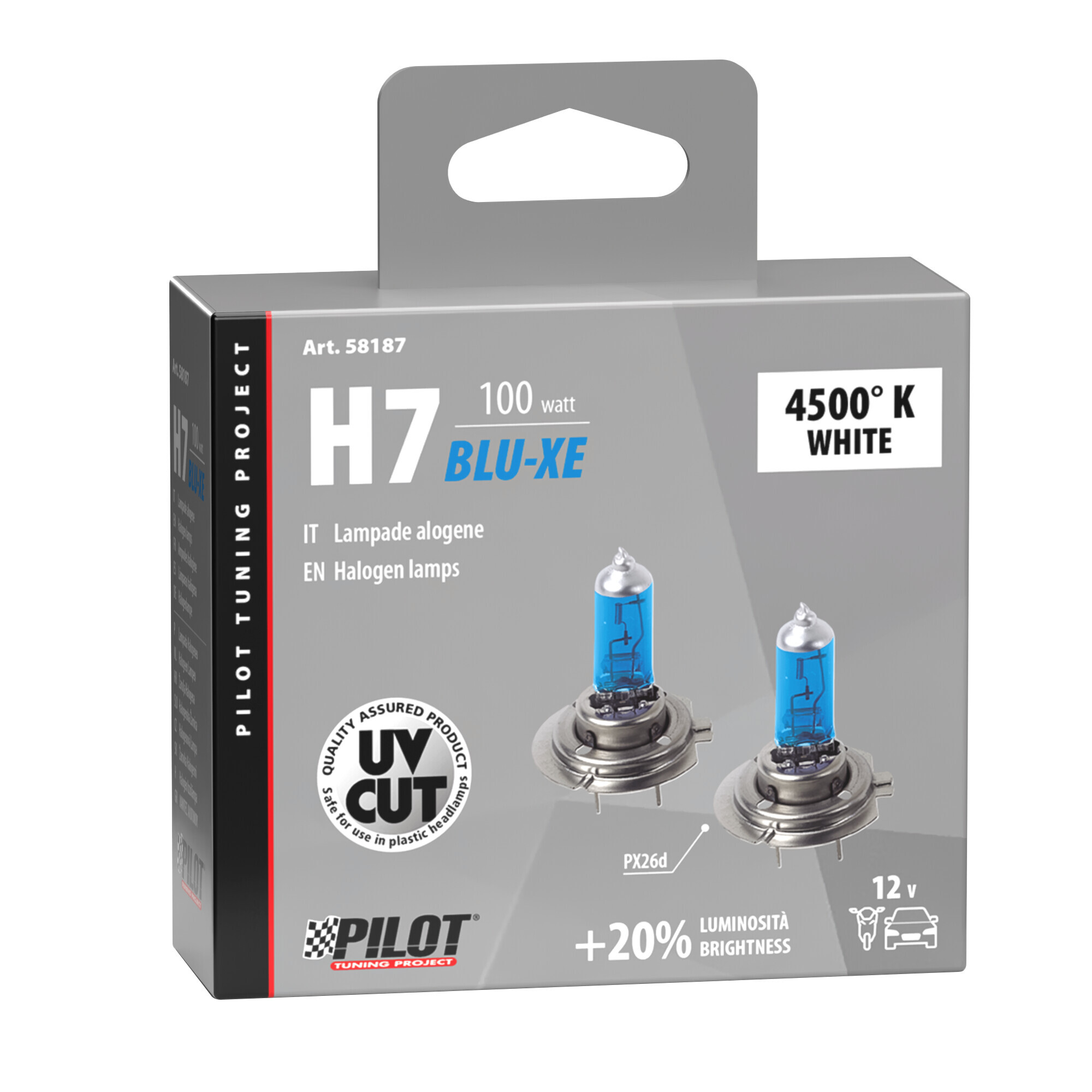 12V Lampada alogena Blu-Xe – H7 – 100W – PX26d – 2 pz – Scatola