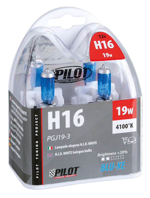 12V Lampada alogena Blu-Xe – H16 – 19W – PGJ19-3 – 2 pz – Scatola Plast.