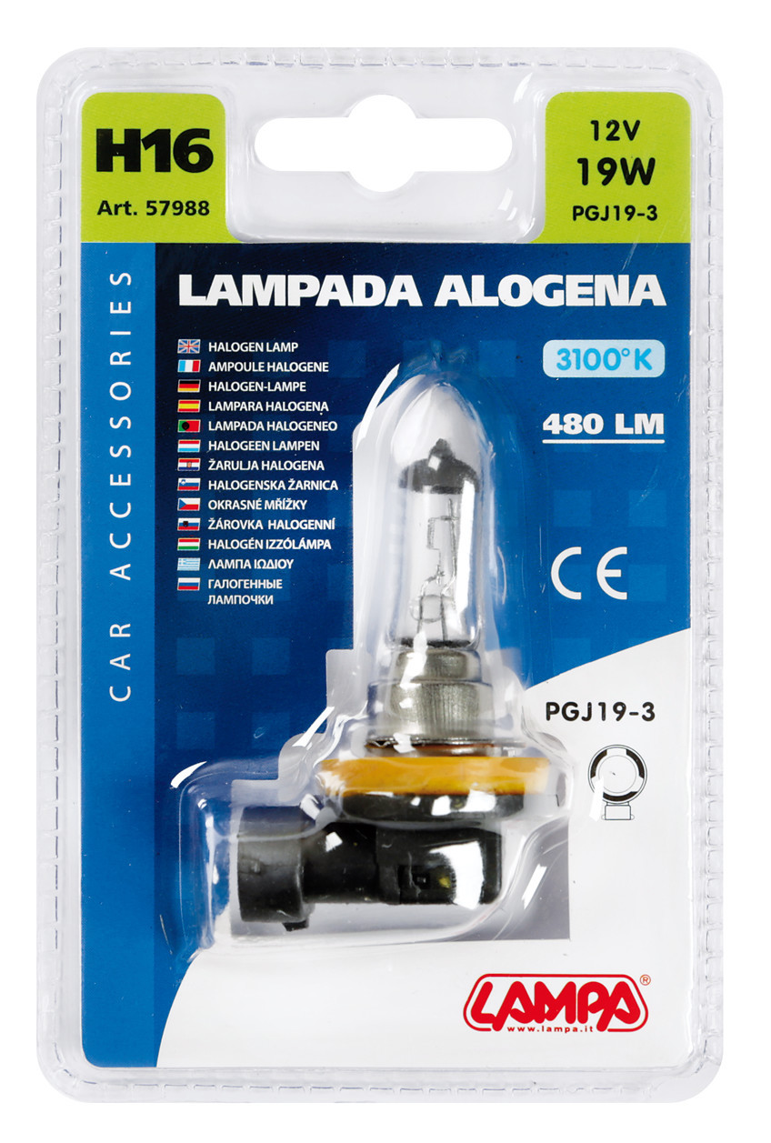 12V Lampada alogena – H16 – 19W – PGJ19-3 – 1 pz – D/Blister