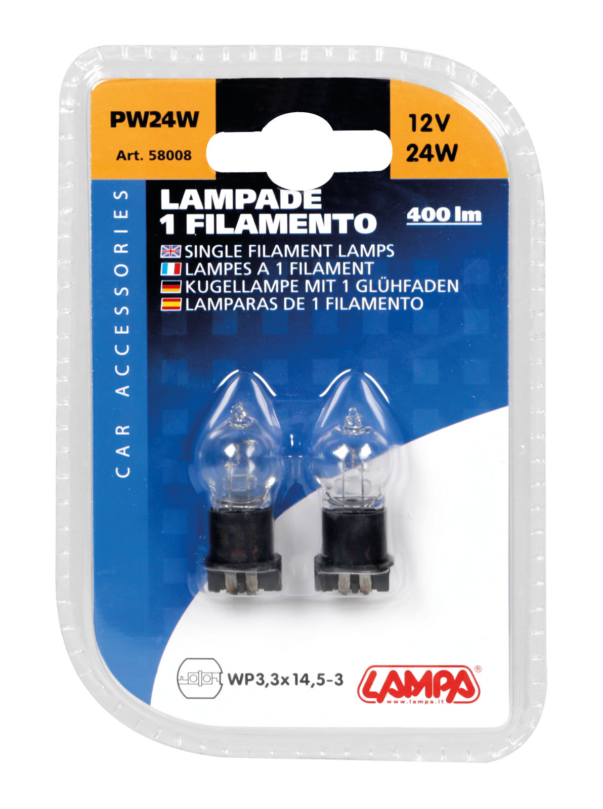 12V Lampada alogena – PW24W – 24W – WP3,3×14,5-3 – 2 pz – D/Blister