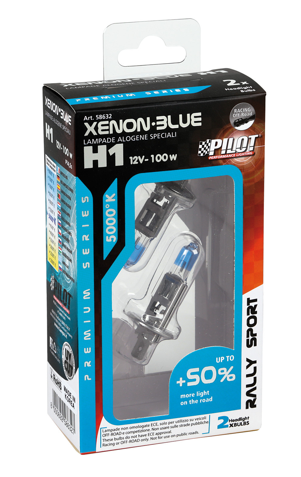 12V Lampada alogena Xenon Blue +50% luce – (H1) – 100W – P14,5s – 2 pz – Scatola