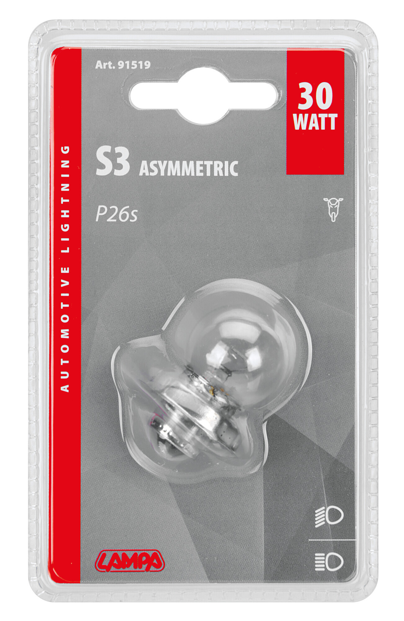 12V Lampada asimmetrica – S3 asymmetric – 30W – P26s – 1 pz – Scatola
