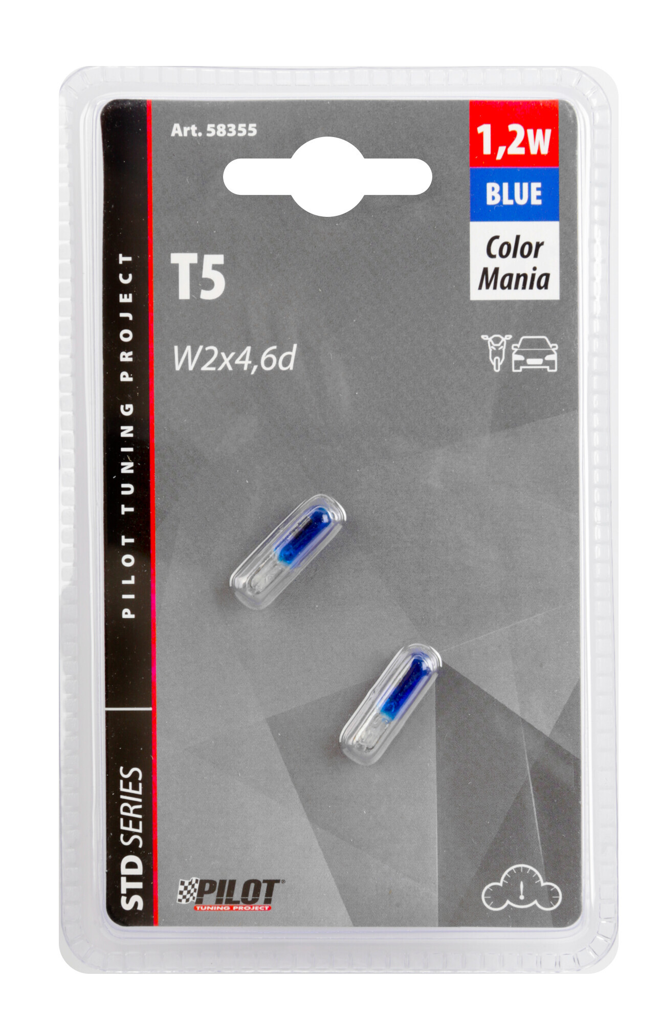 12V Lampada con zoccolo vetro – (T5) – 1,2W – W2x4,6d – 2 pz – D/Blister – Blu
