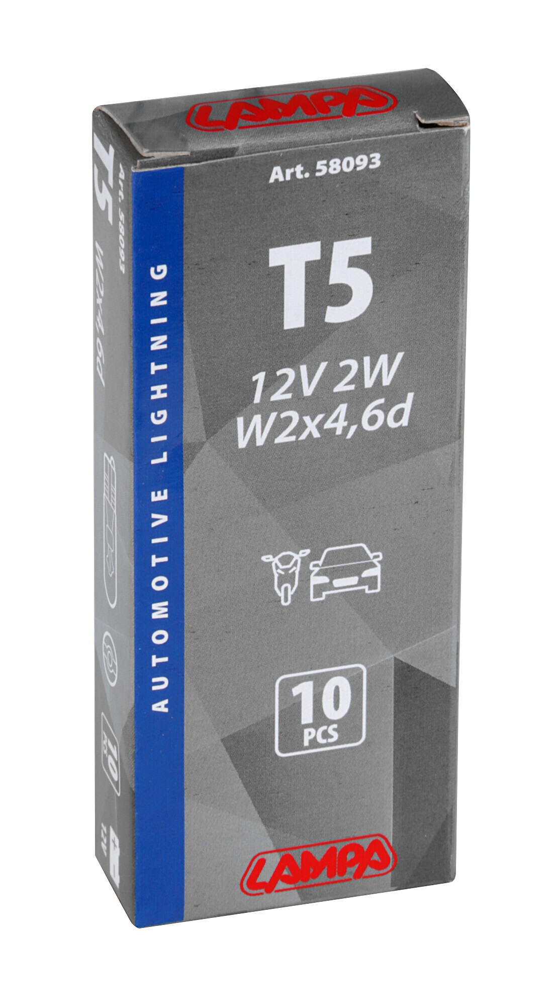 12V Lampada con zoccolo vetro – T5 – 2W – W2x4,6d – 10 pz – Scatola