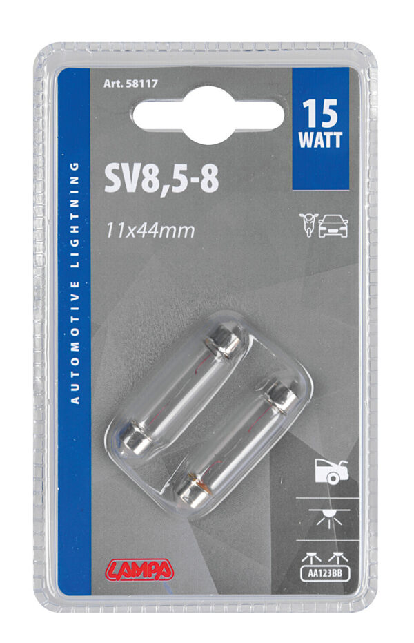 12V Lampada siluro – 11×44 mm – 15W – SV8,5-8 – 2 pz – D/Blister