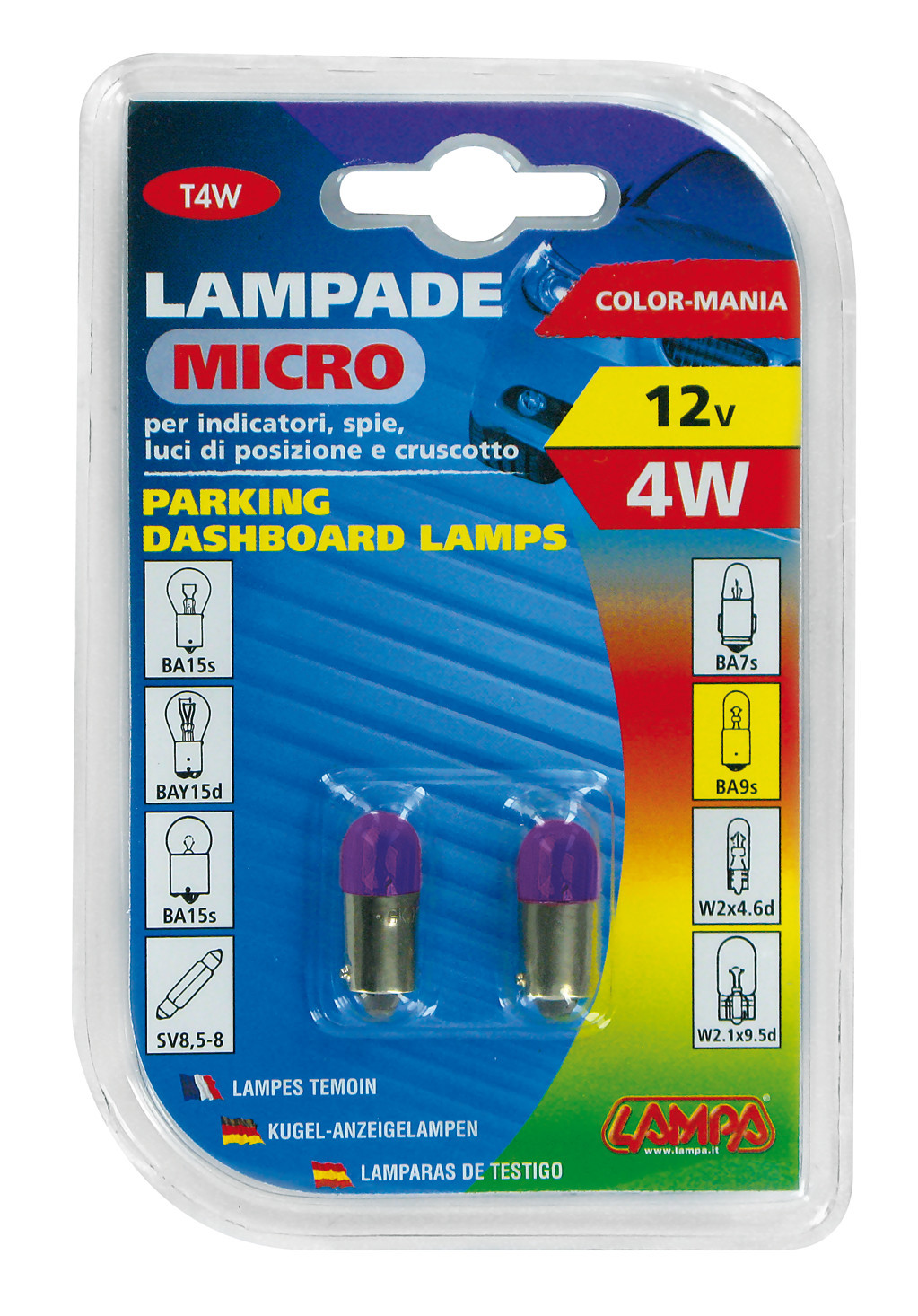 12V Lampada micro – (T4W) – 4W – BA9s – 2 pz – D/Blister – Viola