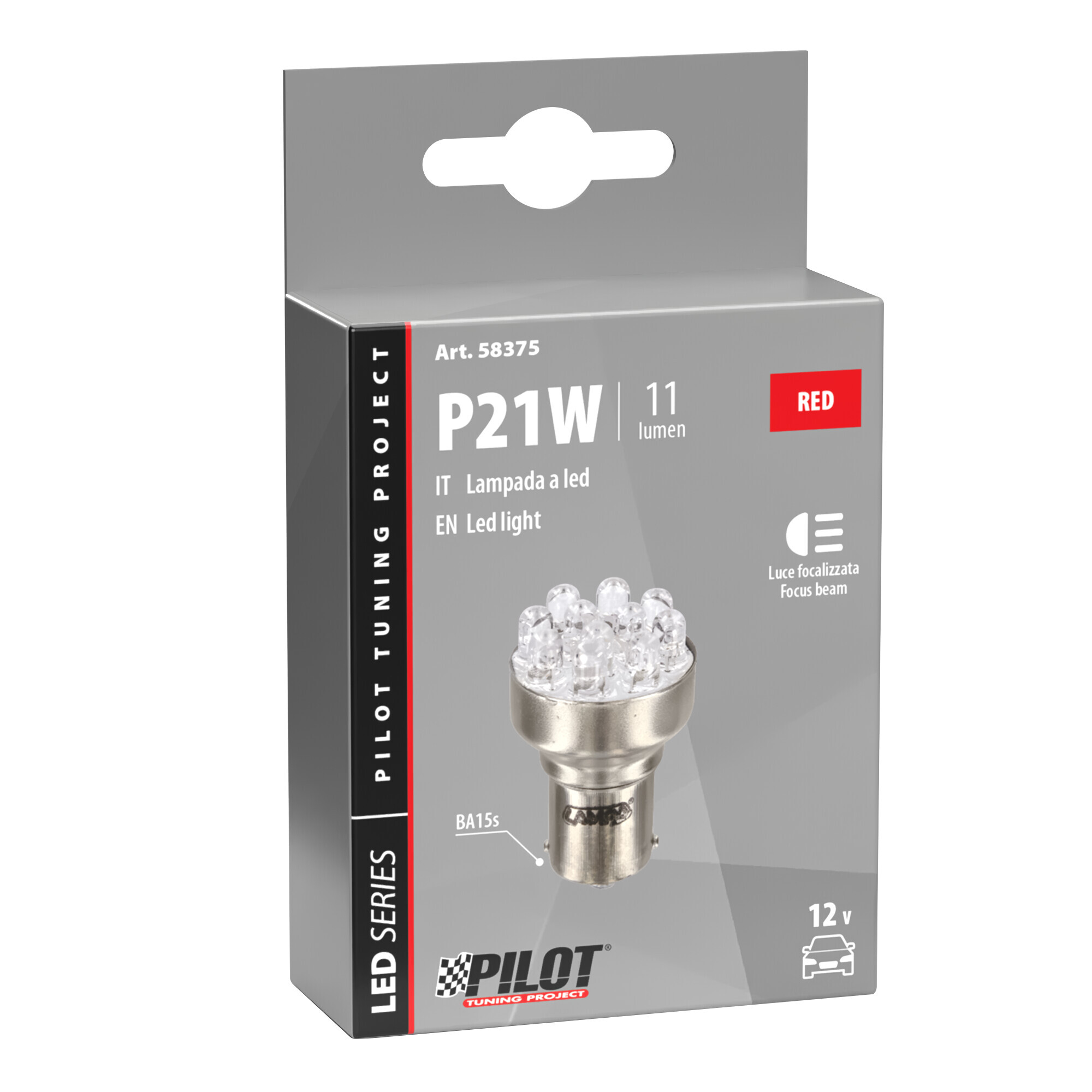 12V Lampada Multi-Led 11 Led – (P21W) – BA15s – 1 pz – Scatola – Rosso