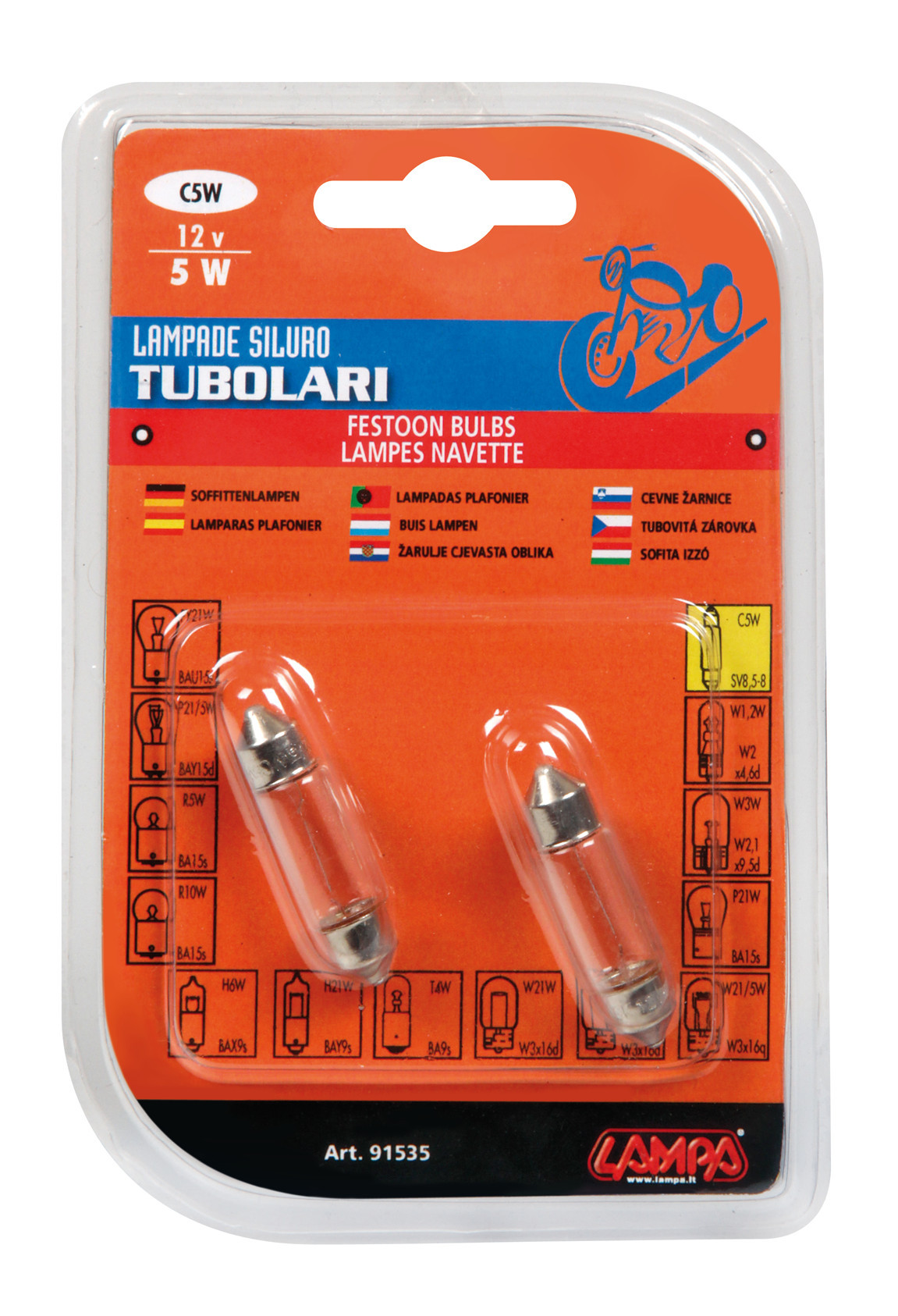 12V Lampada siluro – C5W – 11×35 mm – 5W – SV8,5-8 – 2 pz – D/Blister