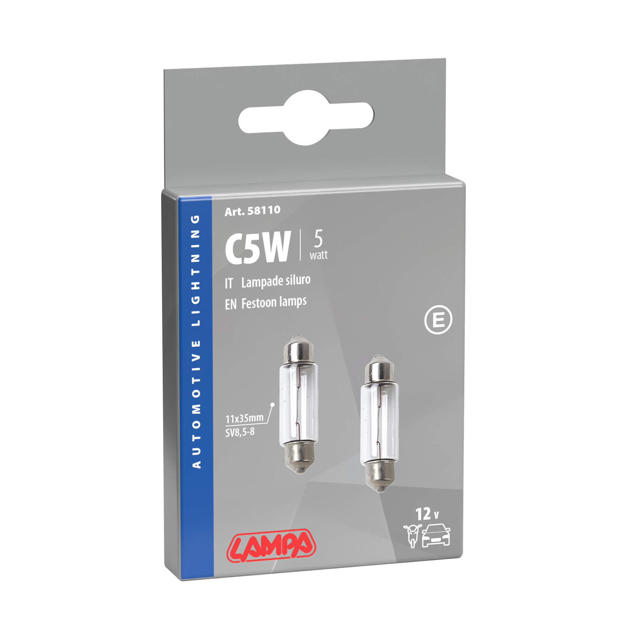 12V Lampada siluro – C5W – 11×35 mm – 5W – SV8,5-8 – 2 pz – Scatola