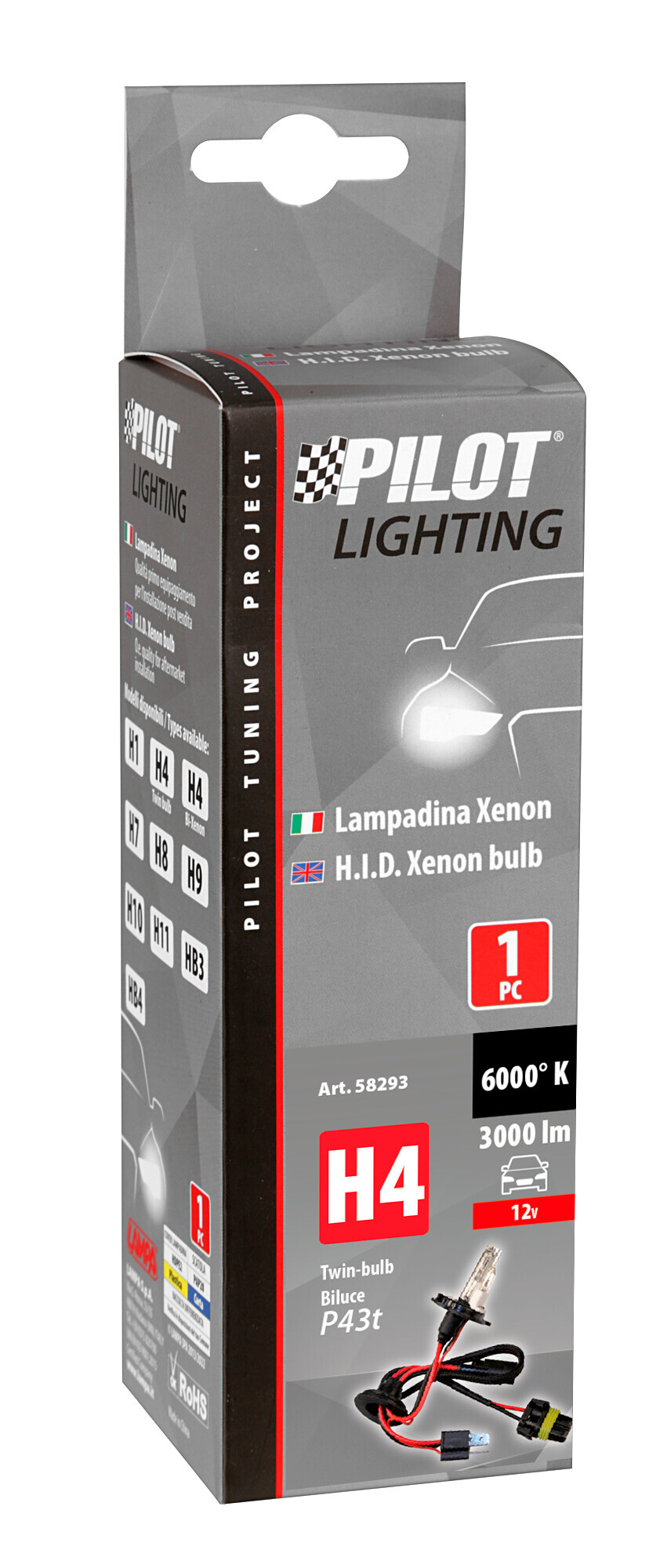 12V Lampadina HID Xenon 6.000K – H4 – 1 pz – Scatola – (Bi-Lampada)