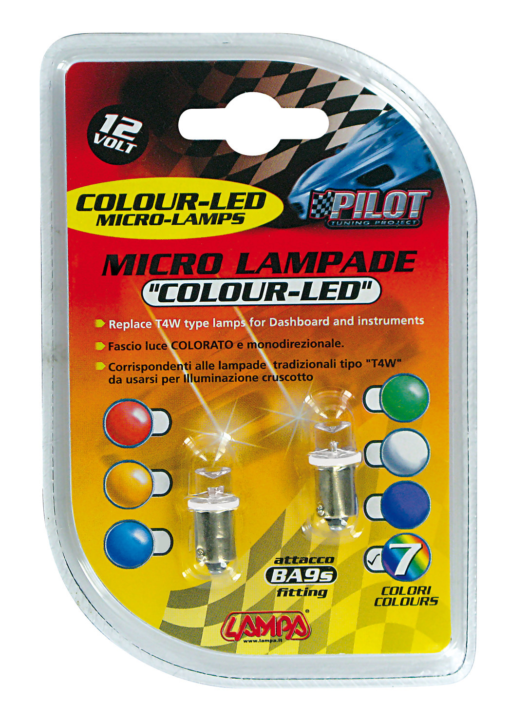 12V Led Series – 1 Led – (T4W) – BA9s – 2 pz – D/Blister – Multicolour