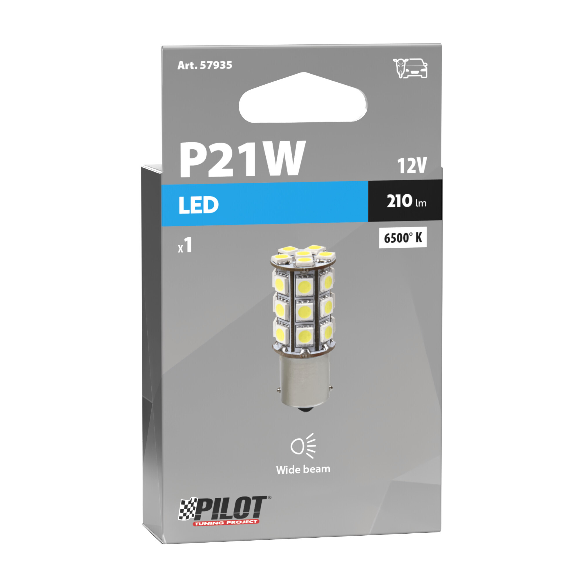 12V Led Series – 8 super chips + 12 chips – (P21W) – Quadrifocus – BA15s – 1 pz – D/Blister – Bianco