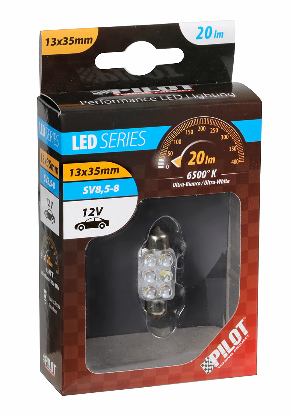 12V Led Series – 6 Led – 13×35 mm – SV8,5-8 – 1 pz – Scatola – Bianco