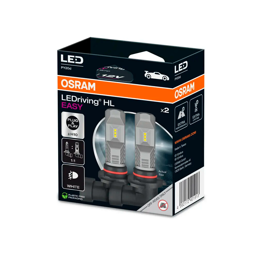 Le lampade OSRAM LEDriving HL EASY per abbaglianti e anabbaglianti sostituiscono le tradizionali lampade alogene, sono compatibili con la tensione a 12 V e hanno una temperatura di colore bianco freddo.