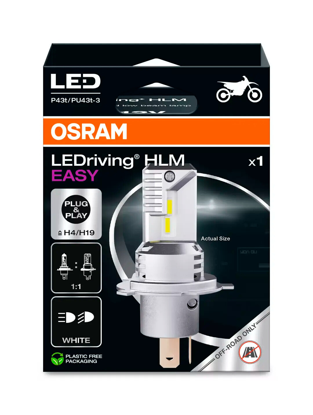 OSRAM LEDriving HLM EASY rappresenta una soluzione semplice per aggiornare i fari delle motociclette convenzionali con luce LED bianca fredda: con una temperatura di colore di 6.000 K, forniscono un aspetto elegante e moderno e una luminosità superiore. Dotate della più recente tecnologia LED e di un design molto compatto, queste lampade consentono un’elevata compatibilità e una facile installazione per un’ampia gamma di modelli di moto. Le lampade LEDriving HLM EASY sono adatte per applicazioni 12V e offrono una lunga durata.