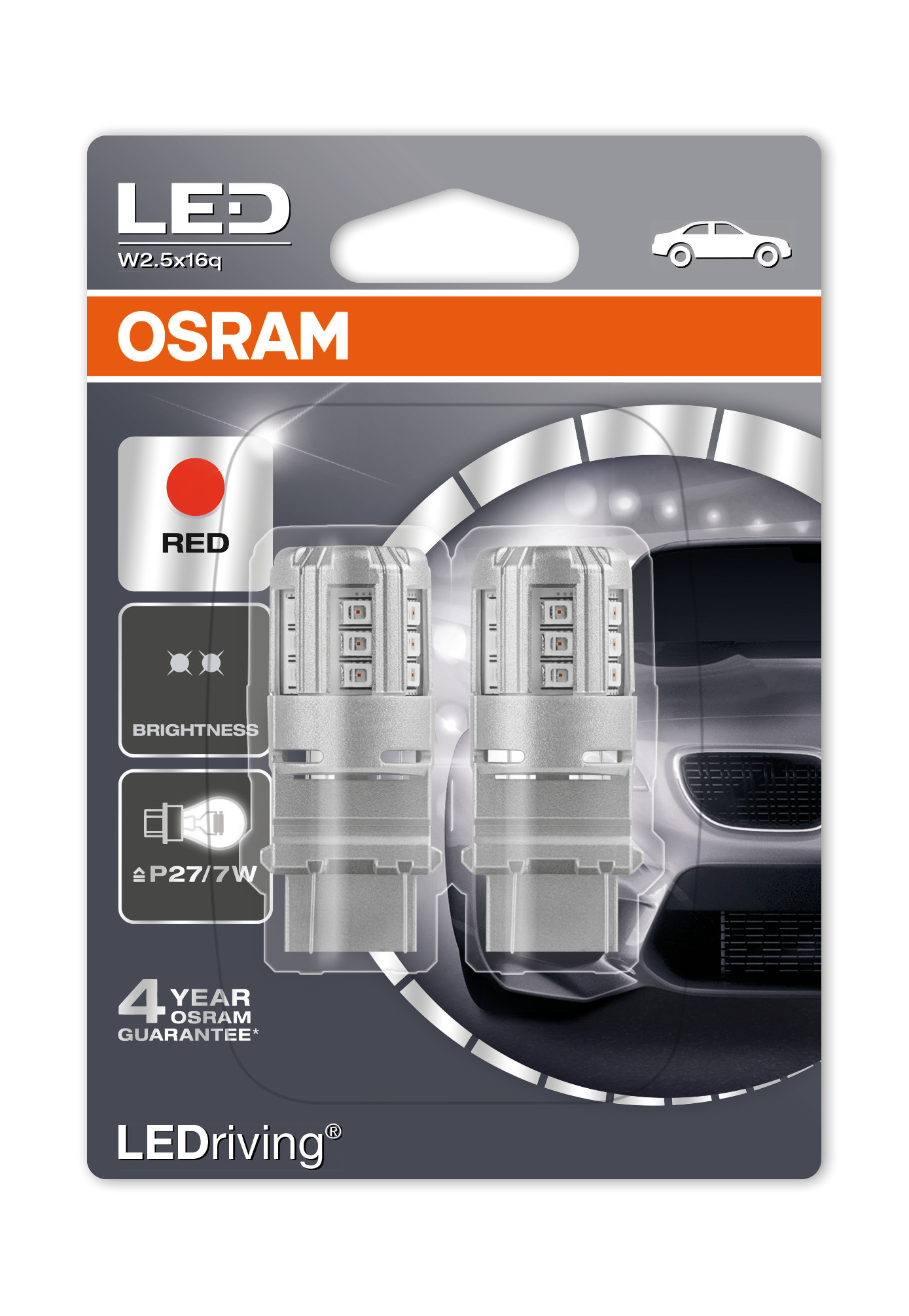 12V LEDriving Retrofit Led Standard – (P27/7W) – W2,5x16q – 2 pz – Blister – Rosso