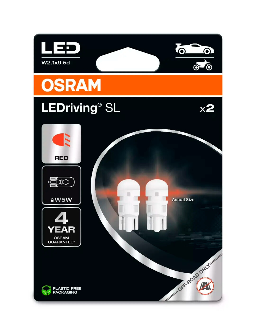 12V LEDriving SL – (W5W) – 1W – W2,1×9,5d – 2 pz – Scatola – Rosso