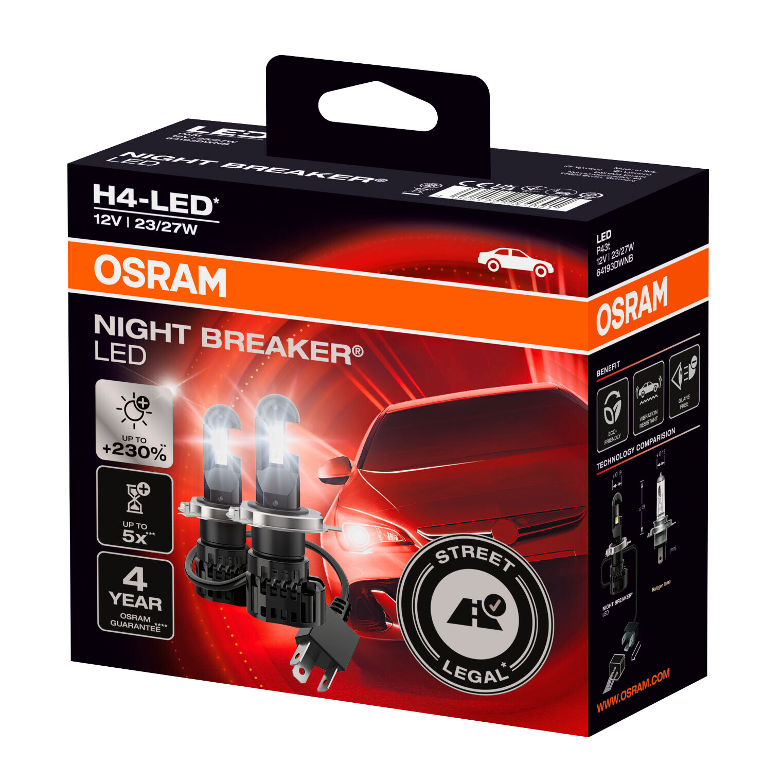 Una brillante rivoluzione nella tecnologia e nel design: la prima lampada LED OSRAM per fari omologata per l’uso su strada è già leader nell’innovazione. Le versioni H1-H4-H7 LED sono state omologate come lampade retrofit per l’installazione nei fari alogeni, in linea con le normative tedesche sulle licenze stradali (StVZO). In aggiunta e sempre in linea con la suddetta normativa, le W5W LED sono state omologate come lampade retrofit per le luci di posizione. OSRAM, il numero uno dell’illuminazione automobilistica, ha ingegnerizzato e sviluppato le NIGHT BREAKER LED e le ha testate in collaborazione con il TÜV-Süd. Approvate dall’Autorità Federale Tedesca per il Trasporto Automobilistico (KBA) per un’ampia gamma di fari e di tipologie di veicoli, con le NIGHT BREAKER LED anche tu potrai sperimentare le prestazioni superiori di una tecnologia di illuminazione all’avanguardia nella tua auto. Per una nuova esperienza di guida, giorno e notte.