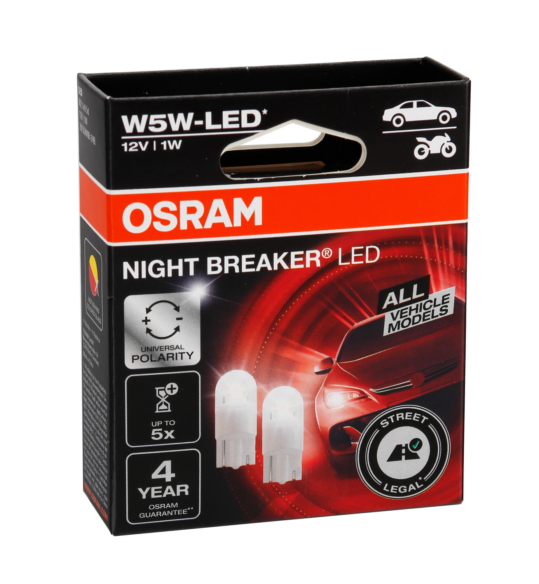 Una brillante rivoluzione nella tecnologia e nel design: la prima lampada LED OSRAM per fari omologata per l’uso su strada è già leader nell’innovazione. Le versioni H1-H4-H7 LED sono state omologate come lampade retrofit per l’installazione nei fari alogeni, in linea con le normative tedesche sulle licenze stradali (StVZO). In aggiunta e sempre in linea con la suddetta normativa, le W5W LED sono state omologate come lampade retrofit per le luci di posizione. OSRAM, il numero uno dell’illuminazione automobilistica, ha ingegnerizzato e sviluppato le NIGHT BREAKER LED e le ha testate in collaborazione con il TÜV-Süd. Approvate dall’Autorità Federale Tedesca per il Trasporto Automobilistico (KBA) per un’ampia gamma di fari e di tipologie di veicoli, con le NIGHT BREAKER LED anche tu potrai sperimentare le prestazioni superiori di una tecnologia di illuminazione all’avanguardia nella tua auto. Per una nuova esperienza di guida, giorno e notte.