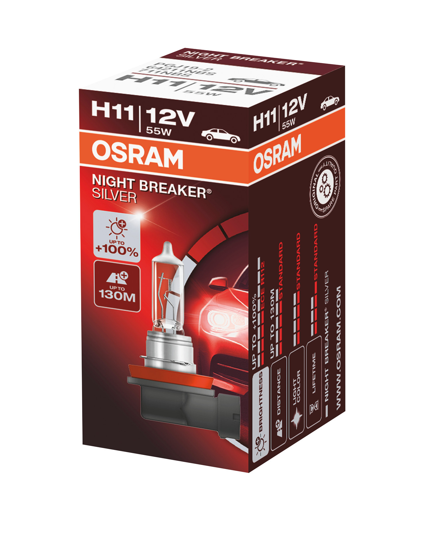 12V Night Breaker Silver – H11 – 55W – PGJ19-2 – 1 pz – Scatola
