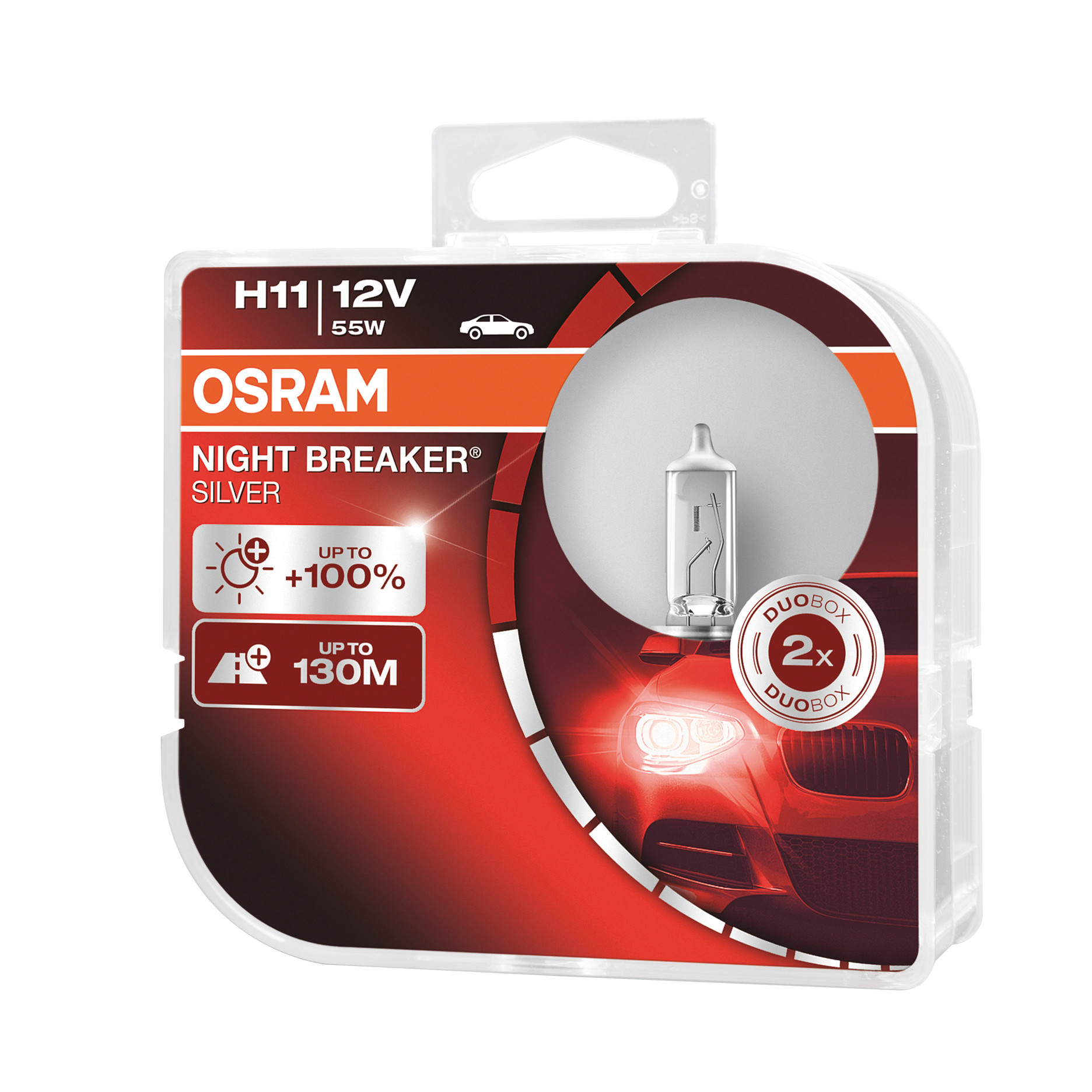 12V Night Breaker Silver – H11 – 55W – PGJ19-2 – 2 pz – Scatola Plast.