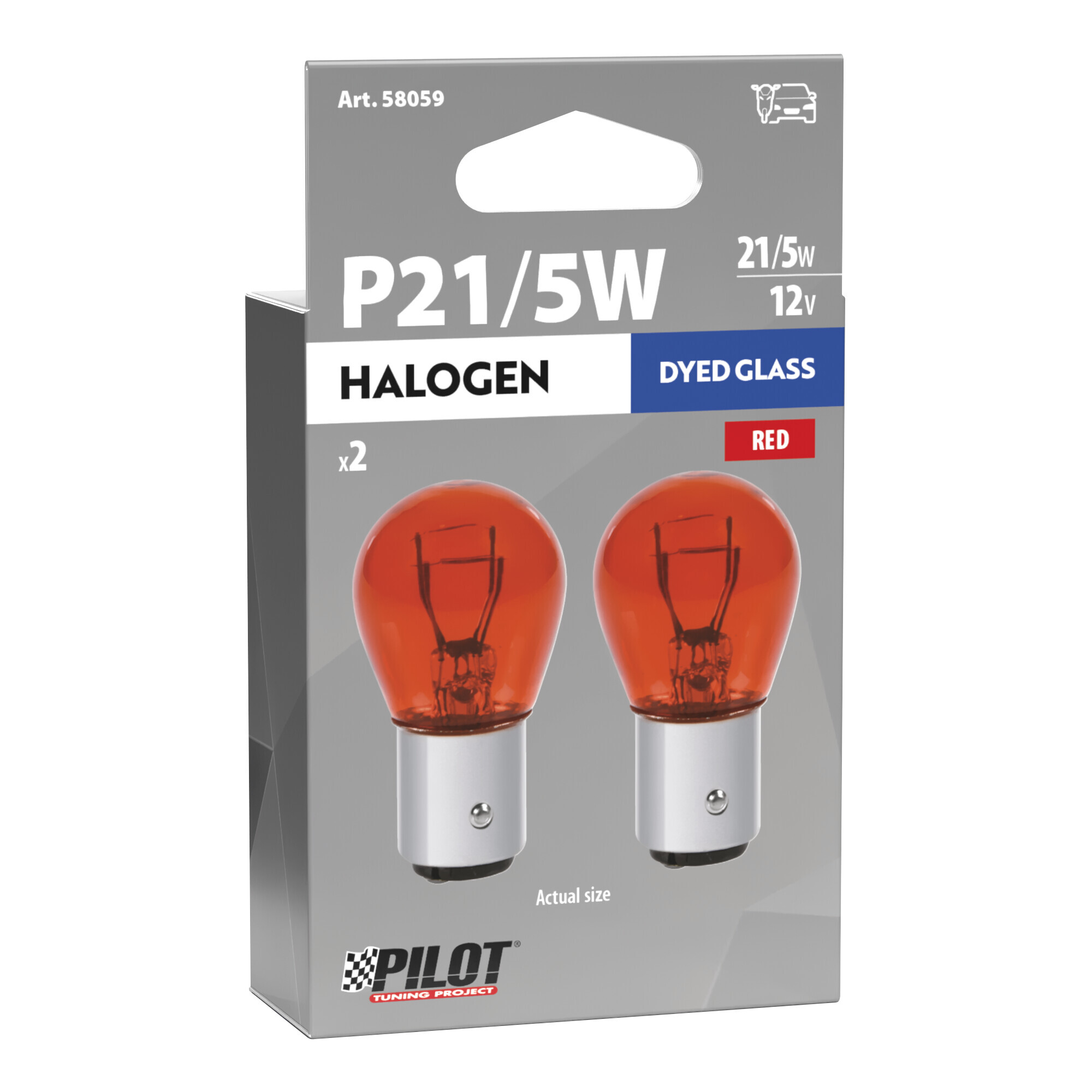 12V Red Dyed Glass, Lampada 1 filamento – (P21W) – 21W – BA15s – 2 pz – Scatola