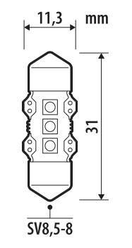 12V Ultra-Lumen Series – 11,3×31 mm – SV8,5-8 – 1 pz – Scatola – Bianco – Doppia polarità
