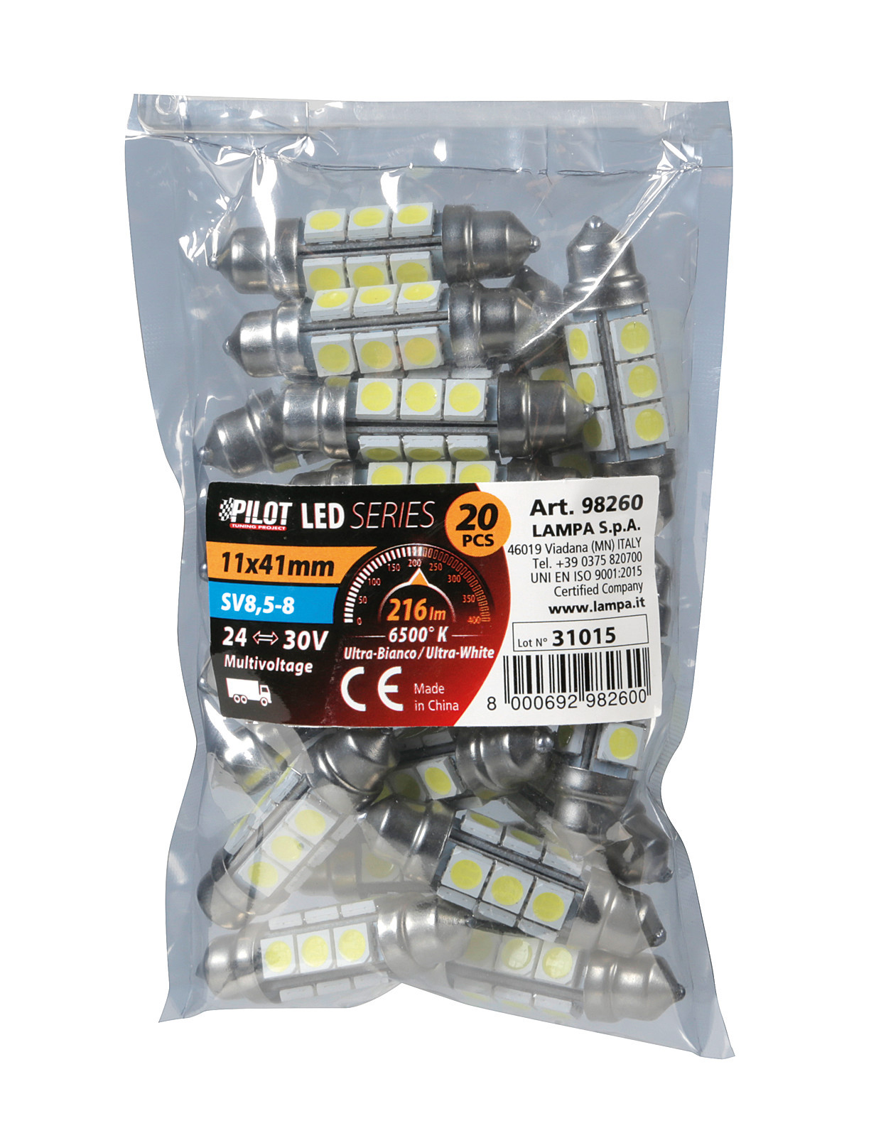 24/30V Led Series – 12 SMD x 3 chips – 11×41 mm – SV8,5-8 – 20 pz – Busta – Bianco – Doppia polarità
