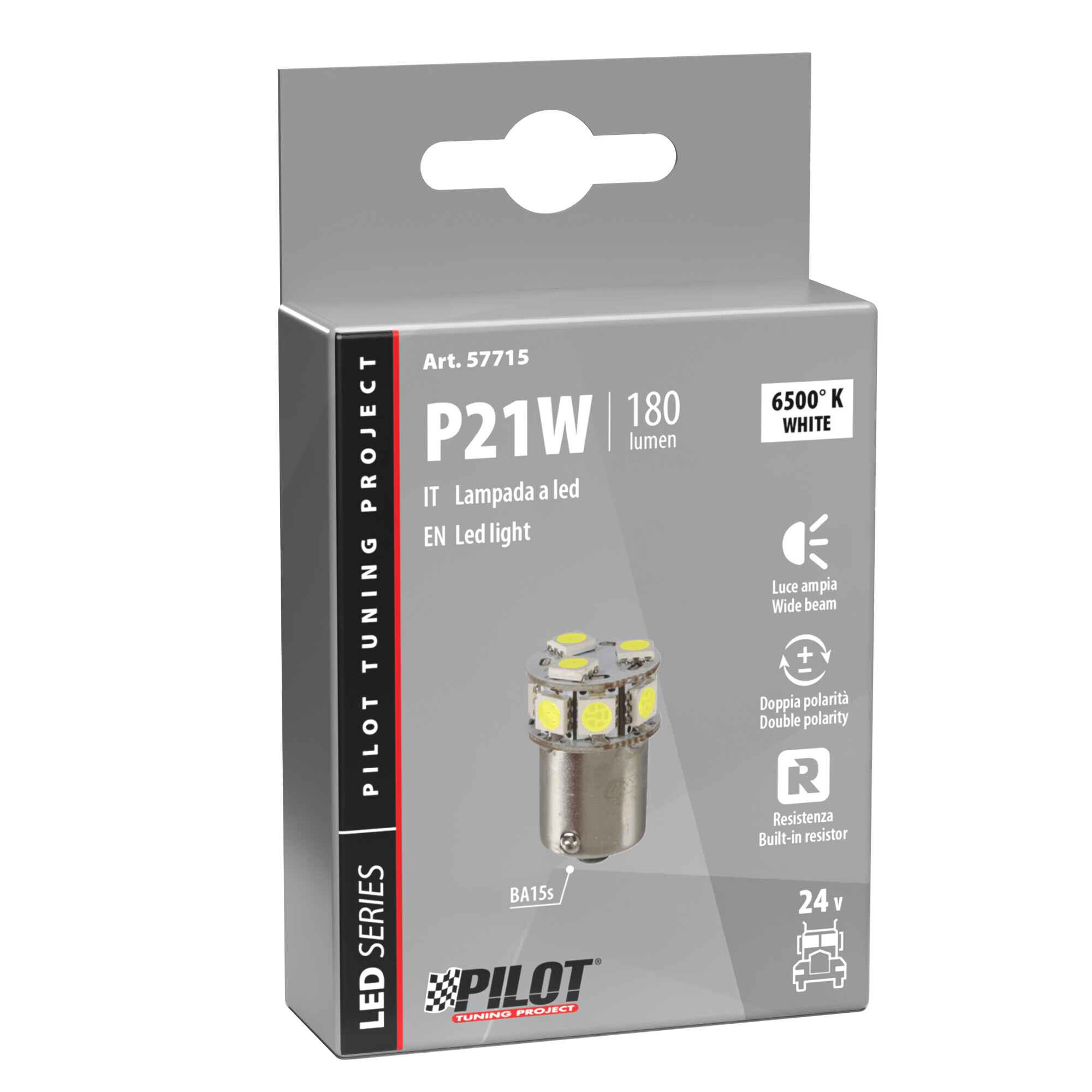 24/32V Led series – 10 SMD x 1 chip – (P21W) – BA15s – 1 pz – Scatola – Bianco – Doppia polarità – Resistenza incorporata
