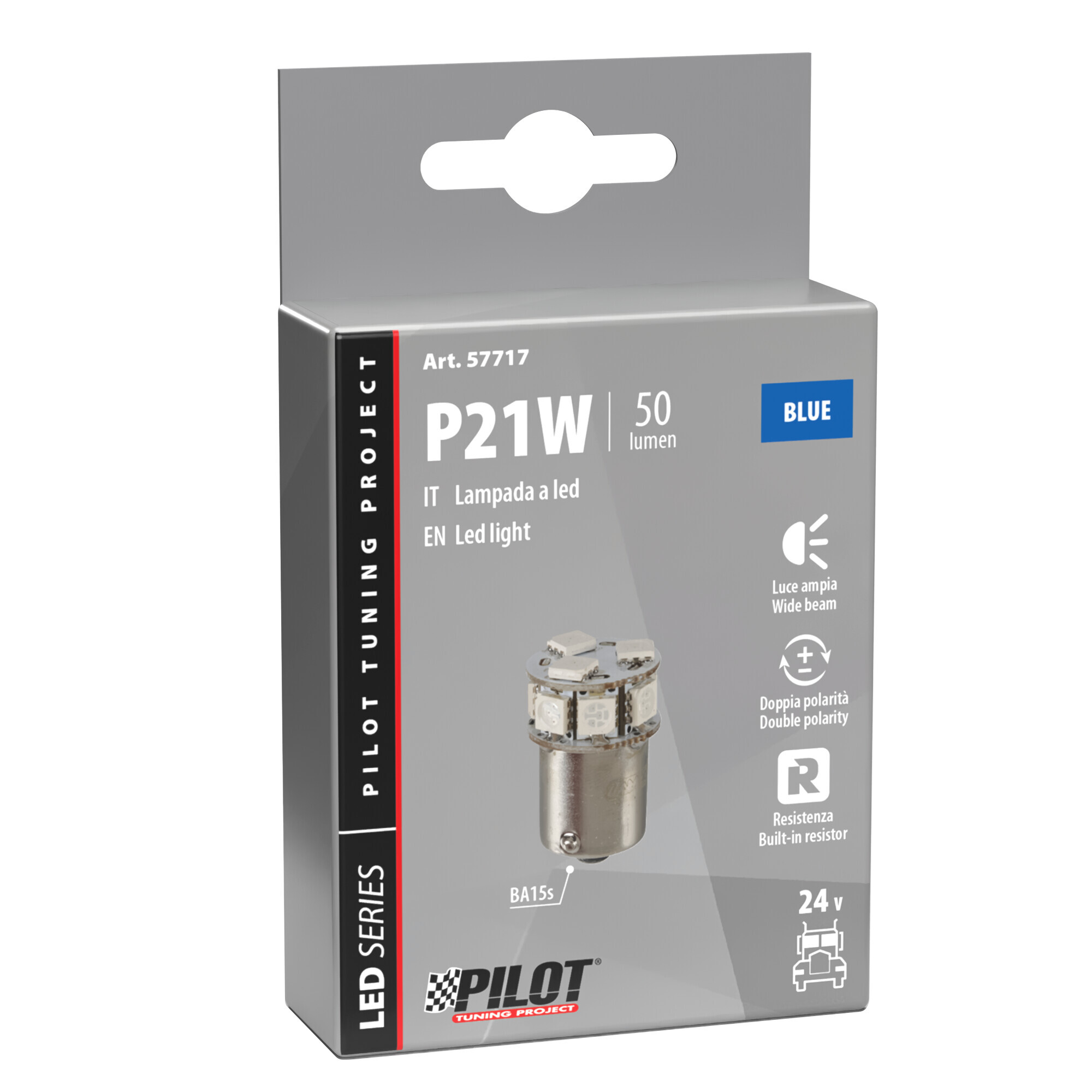 24/32V Led series – 10 SMD x 1 chip – (P21W) – BA15s – 1 pz – Scatola – Blu – Doppia polarità – Resistenza incorporata