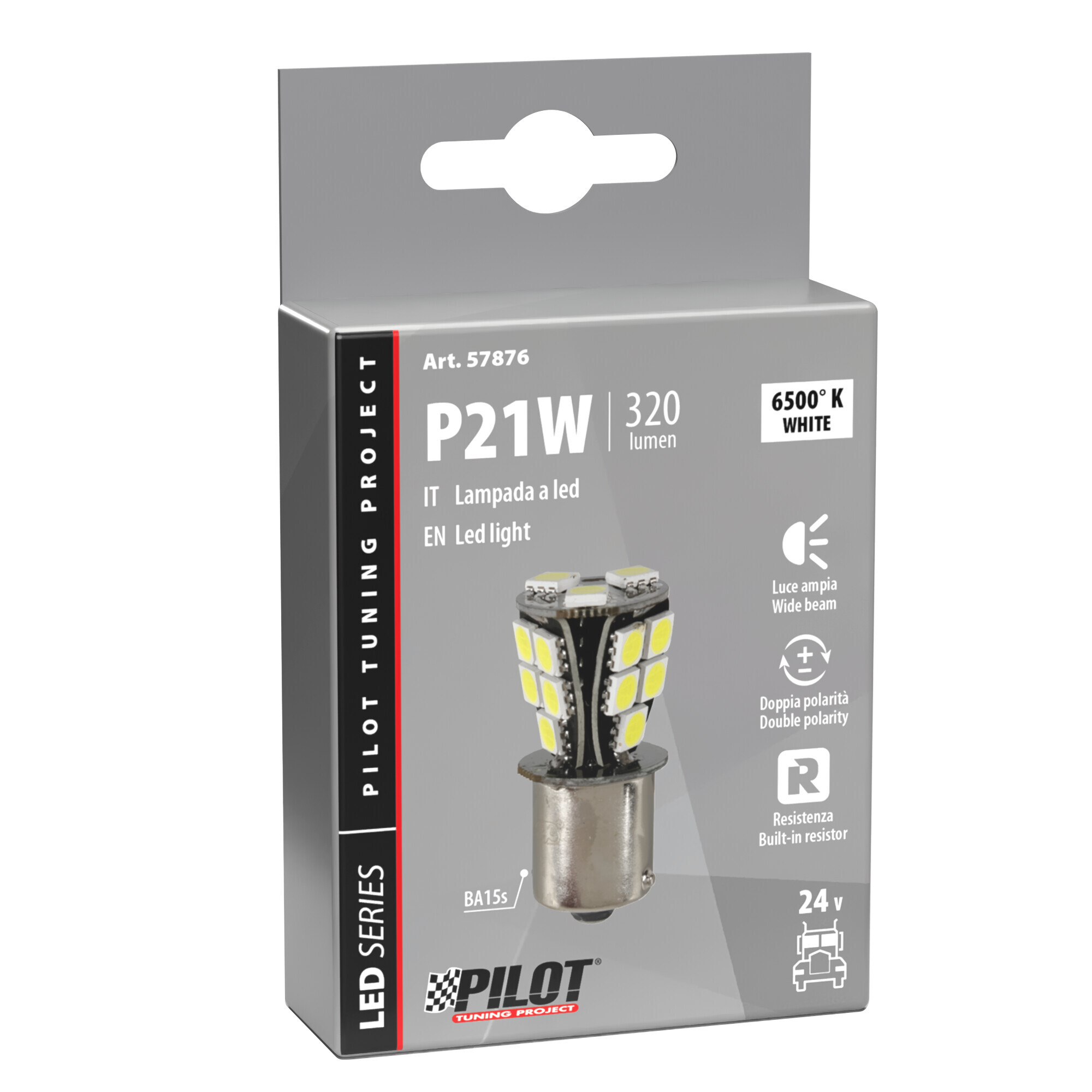 24/32V Led series – 18 SMD x 1 chip – (P21W) – BA15s – 1 pz – Scatola – Bianco – Doppia polarità – Resistenza incorporata