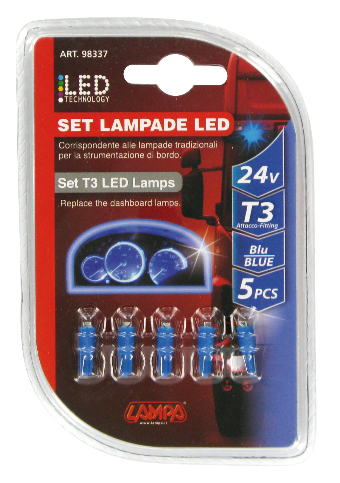 24V Kit Lampade cruscotto Led 1 Led – (T3) – W2x4,6d – 5 pz – D/Blister – Blu