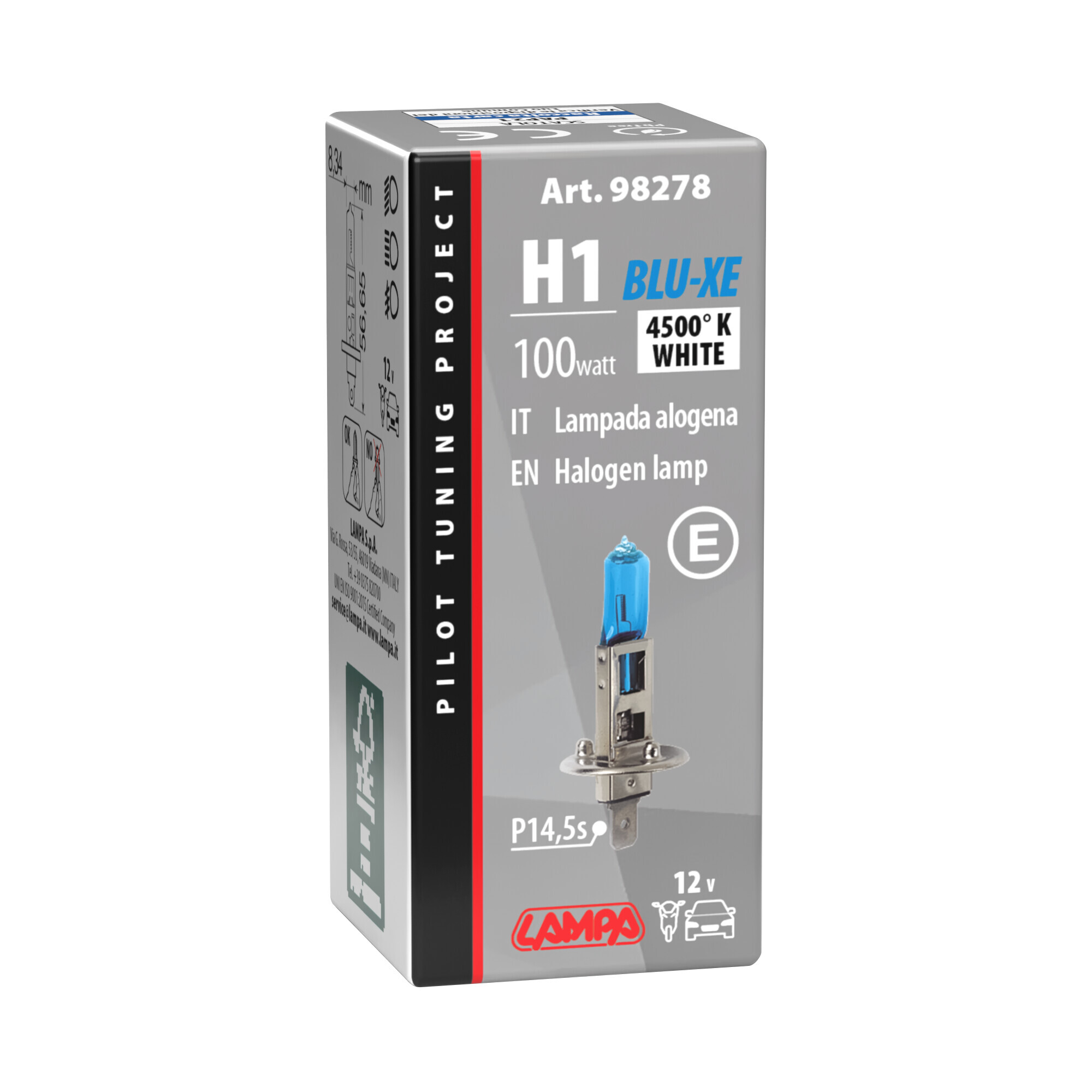 Fascio luce ultra-bianco, simile alle lampade xenon. Alta luminosità, 20% più brillantezza delle tradizionali lampade alogene. È sufficiente sostituire le tradizionali lampade di serie con Blu-Xe ed ottenere un fascio luce ultra-bianco simile ai proiettori a scarica di gas (HID)