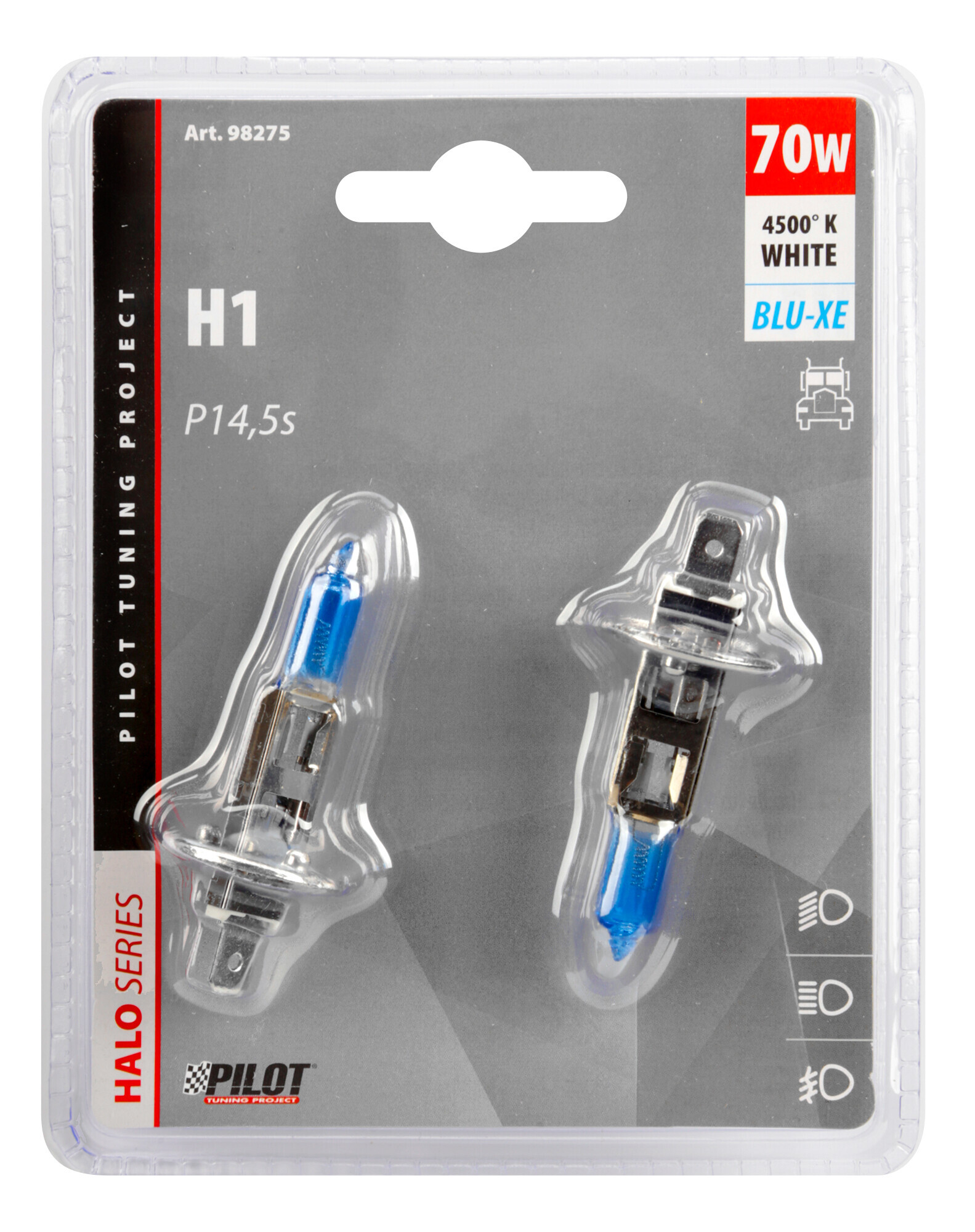 Fascio luce ultra-bianco, simile alle lampade xenon. Alta luminosità, 20% più brillantezza delle tradizionali lampade alogene. È sufficiente sostituire le tradizionali lampade di serie con Blu-Xe ed ottenere un fascio luce ultra-bianco simile ai proiettori a scarica di gas (HID)