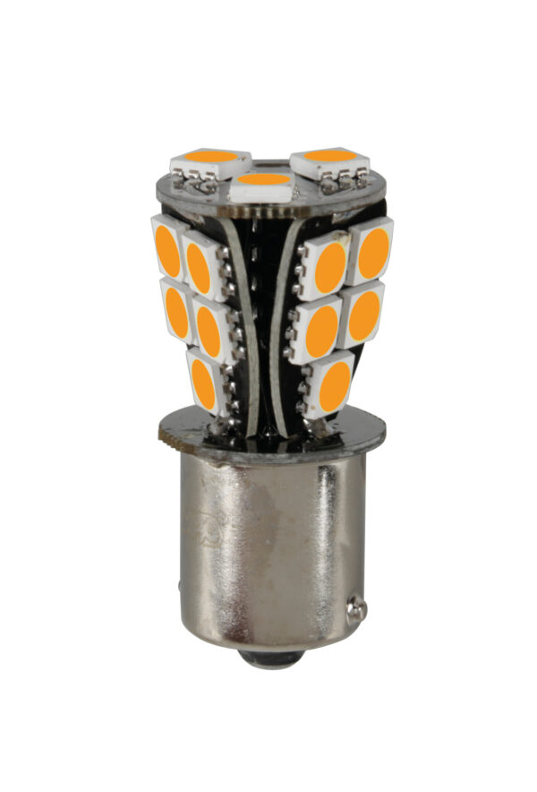 24/32V Led series – 18 SMD x 1 chip – (P21W) – BA15s – 1 pz – D/Blister – Arancio – Doppia polarità – Resistenza incorporata