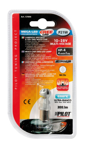 10/28V Led Series – 4 SMD x 1 chip – (P21W) – BA15s – 1 pz – D/Blister – Bianco